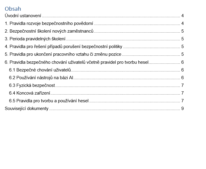 - Bezpečnostní postupy při změně či ukončení pracovního poměru