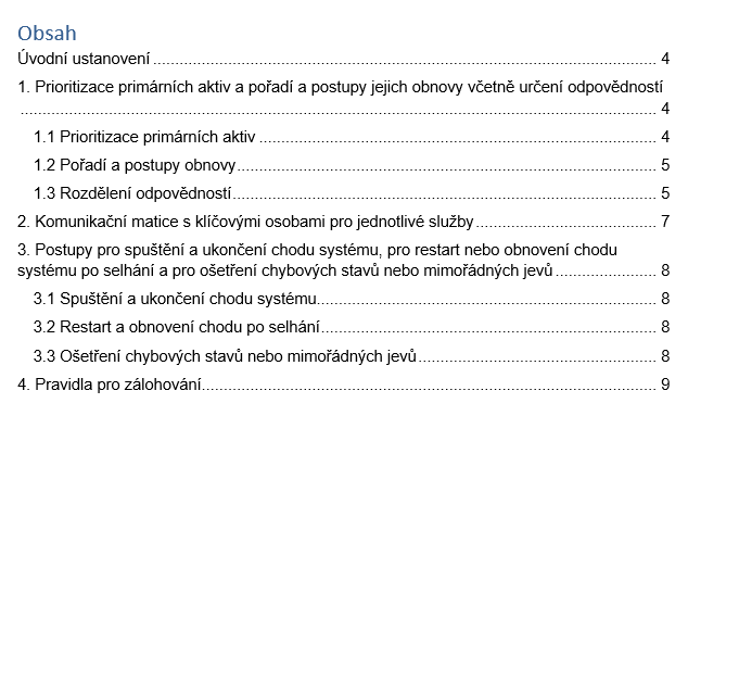 Politika vám pomůže stanovit prioritní aktiva, určit jejich obnovu a přidělit jasné odpovědnosti. Obsahuje konkrétní postupy pro restart systému, řešení výpadků, nastavení komunikace mezi klíčovými lidmi a pravidla pro zálohování. Získáte tak přehledný plán, díky kterému zvládnete výpadky bez zbytečných ztrát.