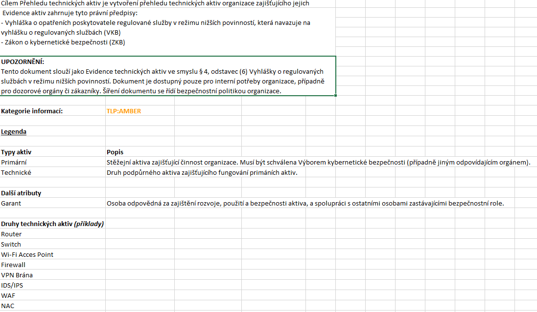 Přehled technických aktiv je připravený pro menší a střední firmy, které chtějí mít kybernetickou bezpečnost pod kontrolou a plnit požadavky nové Vyhlášky o kybernetické bezpečnosti (VoKB). Díky strukturovanému seznamu technických aktiv včetně vazeb na primární aktiva budete schopni identifikovat slabá místa, plánovat jejich údržbu a správně reagovat na incidenty. Přehled je přehledně zpracovaný včetně úvodní legendy, a je připraven k okamžitému použití.